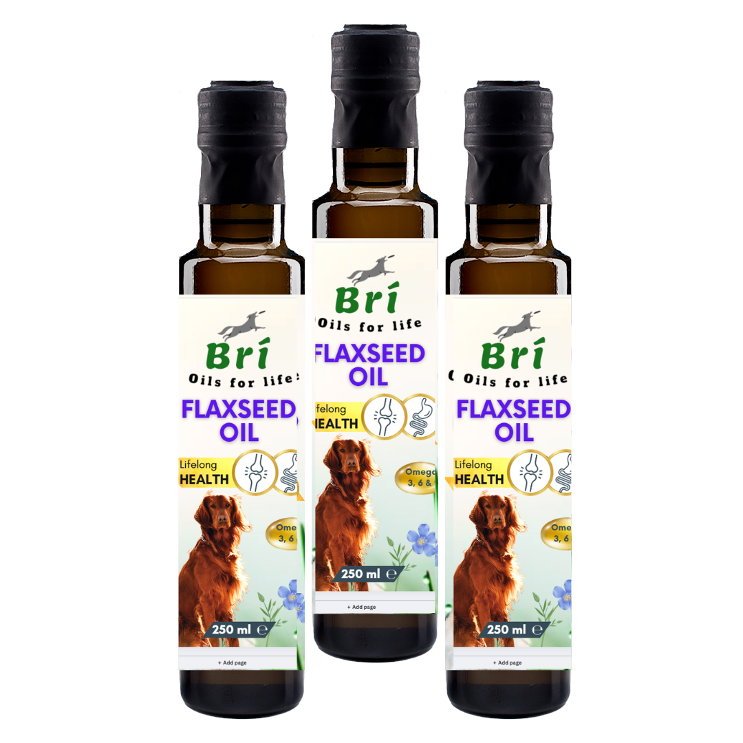 Bri Omega 3 fatty acid content of the cellular membrane component called ceramide enhance skin cell cohesion imparting effective water barrier to the epidermis. Reducing trans-epidermal water loss leads to better skin hydration and therefore less dry, flaky, or irritated skin and softer, glossier coat. CALMS INFLAMMATION : The omega 3 fatty acid is converted into anti-inflammatory compounds which help reduce swelling and stiffness in the joints. By calming inflammation, Bri - Flaxseed oil can lessen joint pain, making it easier for your dog to run around, play, and exercise comfortably. OPTIMUM DIGESTION :Omega 3 fatty acid helps reduce inflammation in the gut lining helping with digestive issues. A calm, healthy digestive tract helps dogs absorb nutrients more efficiently, which supports overall health. Bri Omega Flaxseed Oil also helps with a more balanced immune response.
